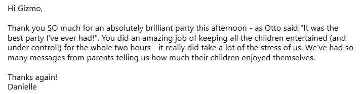GIZMO has performed at shows and events for many hundreds of companies. councils, tourist attractions and holiday parks including: